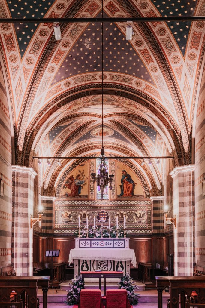 Couples can enjoy guided tours of the estate’s vineyards and cellars, learning about the production of the renowned Chianti Classico wines. The estate’s experienced team assists in planning every detail of the wedding, ensuring a seamless and memorable celebration. With its rich history and stunning surroundings, Castello di Brolio offers a distinctive and elegant venue for a Tuscan wedding.