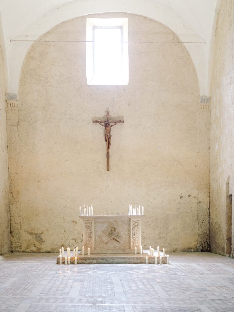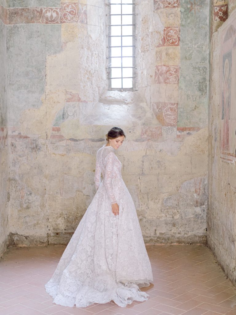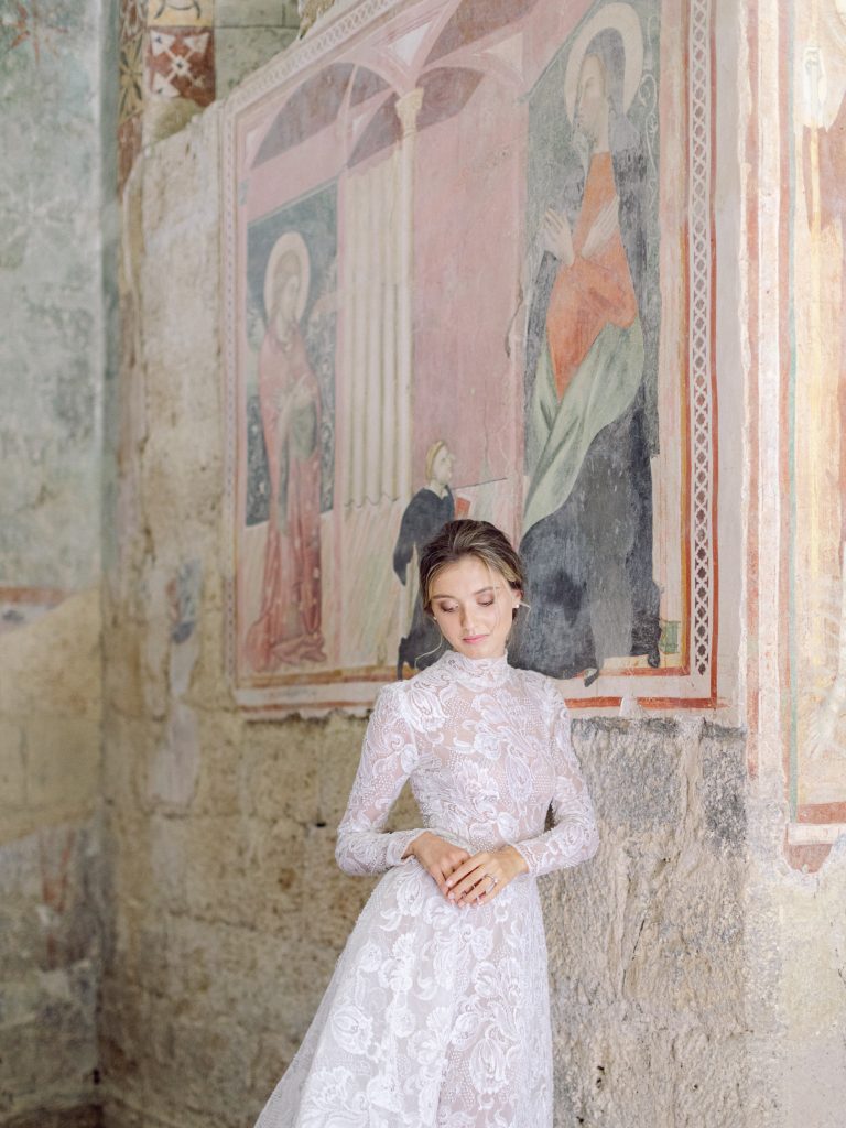 Medieval walls, Renaissance frescoes and a dramatic Gothic stone archway for an unforgettable wedding editorial at La Badia di Orvieto