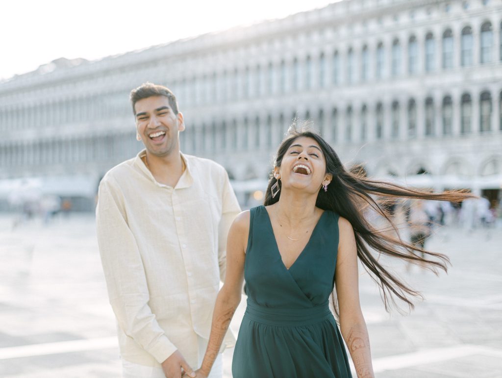 First stop on their honeymoon: Venice. First couple photoshoot as a married couple in Venice. Naini and Akhilesh met with me on a sweet and sunny afternoon in Piazza San Marco. The promising air of Spring was a surely magic first impression of the city. The Piazza was lively but not as packed as usual.
